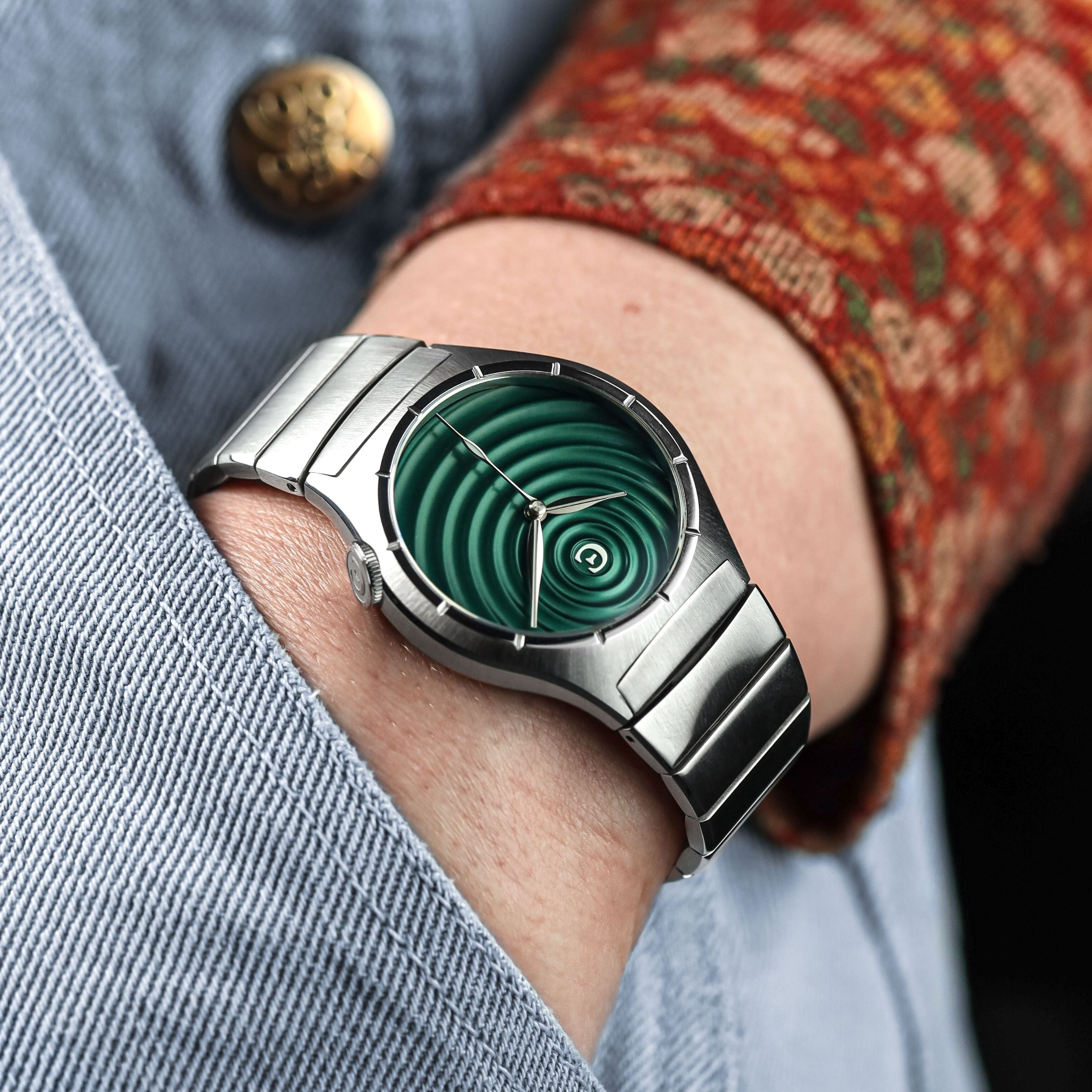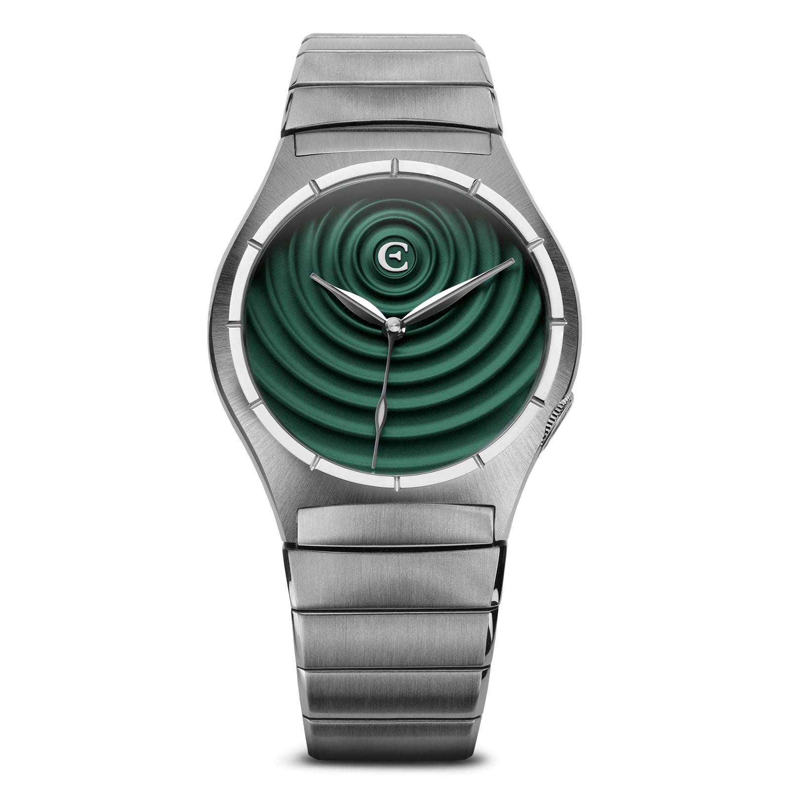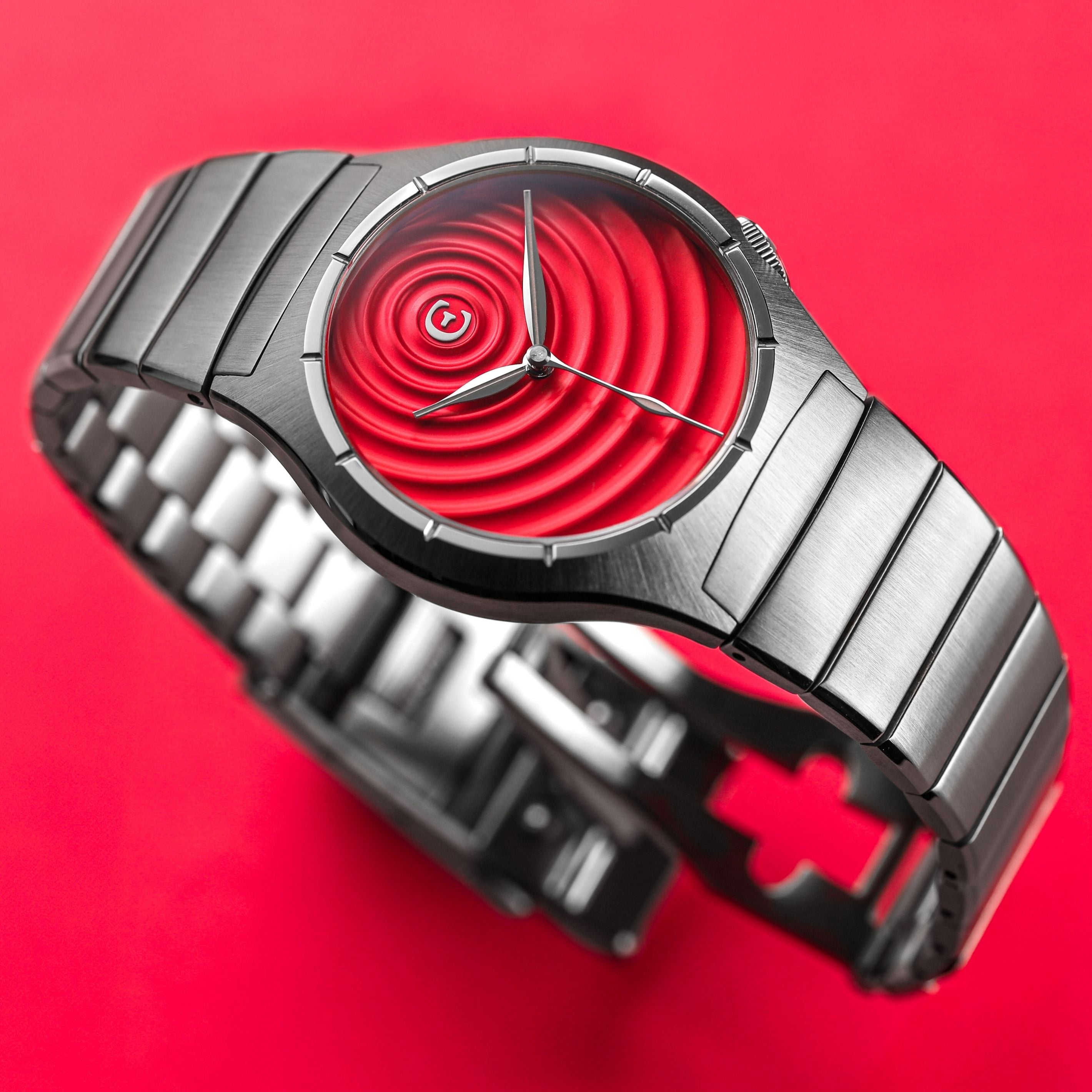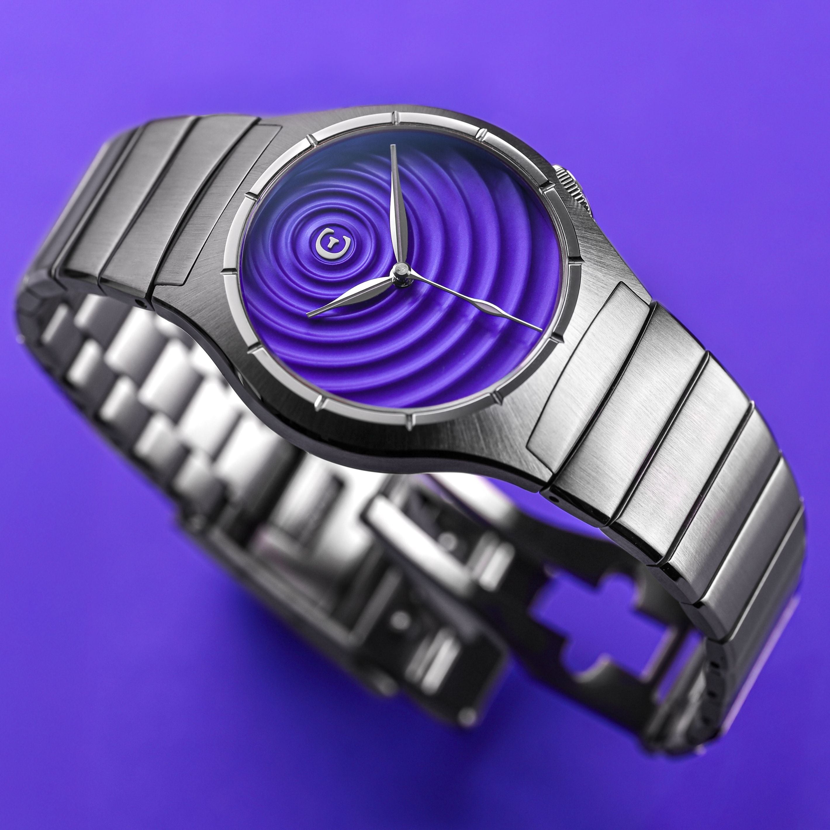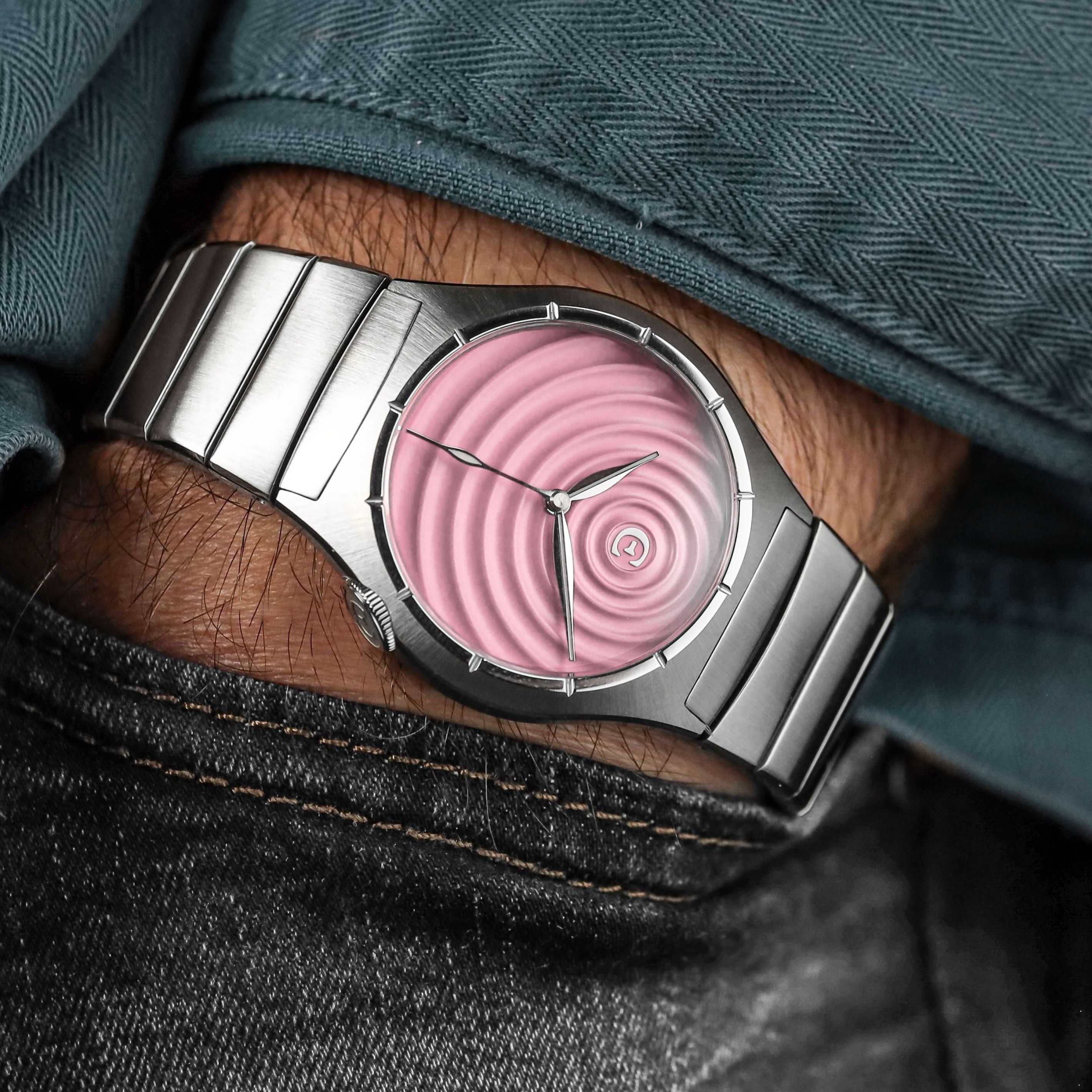 In psychology, rippling refers to the fact that you create - often without your conscious intent or knowledge - concentric circles of influence that may affect others for years, even for generations. And our 3D rippled dress watch does just this.